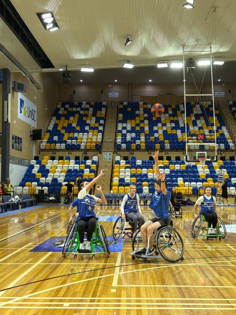 Beyond game day, the collaboration continued with Riley facilitating weekly wheelchair basketball and rugby sessions, held every Wednesday from 12-1pm and open to all UniSC students and staff. These sessions, averaging around 10 participants each week, created an ongoing opportunity for partakers to engage in adaptive sport, learn new skills, and build confidence in an inclusive and supportive setting.